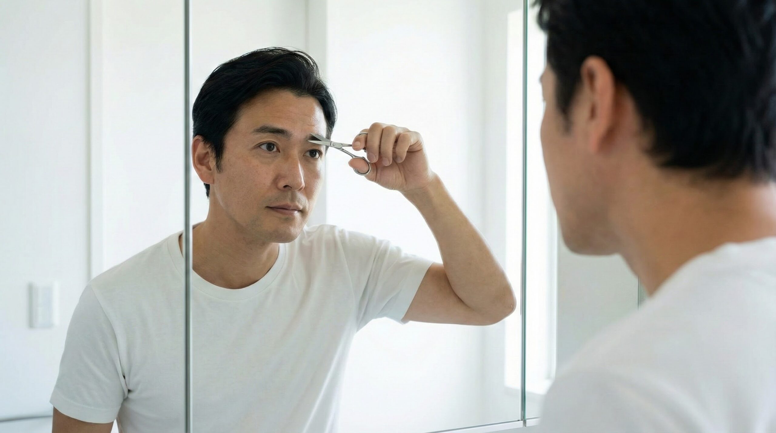 加齢とともに眉毛は伸びやすくなります。これが「老け見え」「だらしなさ」の象徴になります。細く整える必要はありません。週に一度、眉用ハサミで長さを揃え、ムダ毛を抜くだけで、顔の印象は劇的にシャープになります。最もコストパフォーマンスの高いアンチエイジングです。